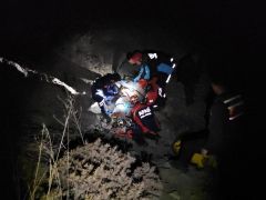 Çorum’da mantar toplamak için gittiği ormanda 250 metre yükseklikteki kayalıklardan uçuruma düşerek yaralanan Hüseyin Gökgöz 5 saat süren çalışmayla kurtarıldı. -