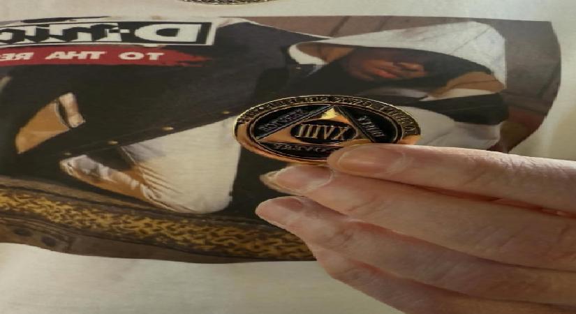 Sosyal medya hesabından alkolsüz ve uyuşturucusuz ömrünün sembolü olarak üzerine “Kendine karşı dürüst ol” cümlesi kazınmış bir madalyonun fotoğrafını paylaşan Eminem’in madalyonunun dış kenarına “Kendine karşı dürüst ol” yazısı ve içine Roma sayılarıyla 18 sayısı işlenmiş bir üçgenin etrafına “birlik, hizmet, iyileşme” sözleri yazılmıştı.