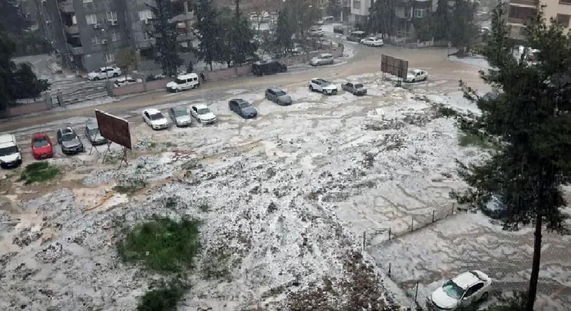 Adana’da sağanak ve dolu nedeniyle, cadde ve sokaklar beyaza büründü