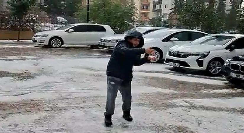 Görüş mesafesinin düştüğü kentte, sürücüler de trafikte güçlükle ilerledi. Bazı çocuklar dolu yağışının ardından sokakta oynadı.