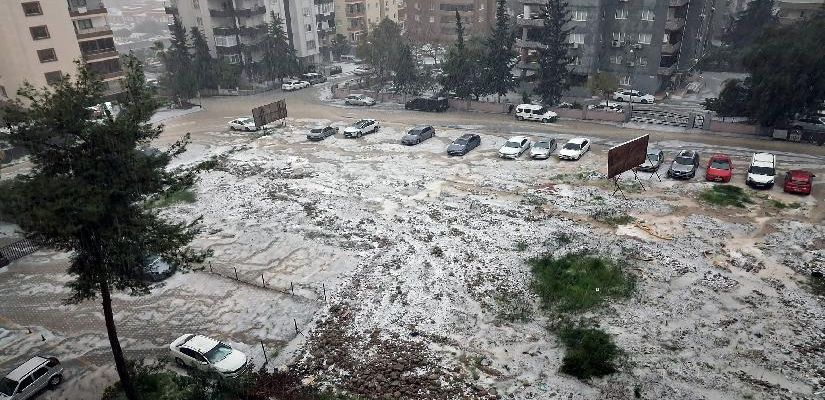Adana’da sağanak ve dolu nedeniyle, cadde ve sokaklar beyaza büründü