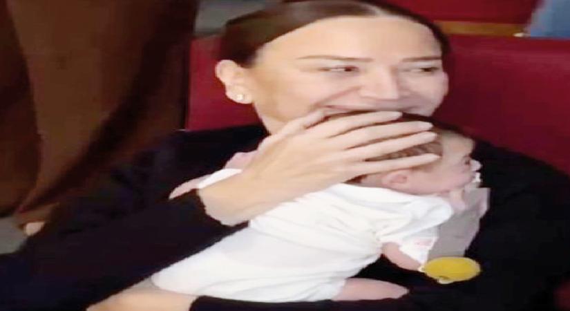 “Ruh Salatası”nı izlemeye gelen Demet Akbağ, oyun öncesi minik bebeği kucağına alıp sevdi.