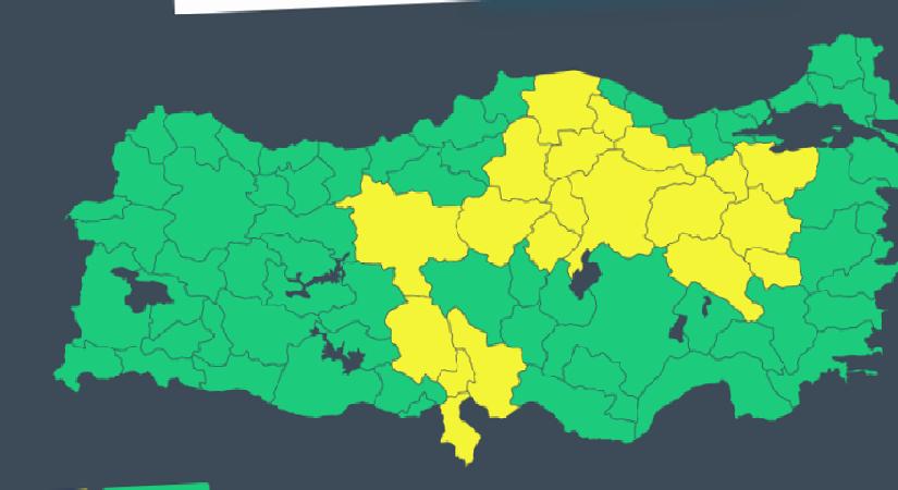 Adana, Afyonkarahisar, Ankara, Bilecik, Bolu, Bursa, Çankırı, Çorum, Eskişehir, Hatay, Kastamonu, Kırşehir, Kütahya, K.Maraş, Sivas, Uşak, Yozgat, Kırıkkale, Karabük ve Osmaniye için sarı kodlu kuvvetli sağanak ve zirai don uyarısı yapıldı.