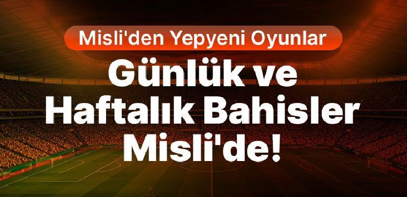 Avrupa ligleri ve Avrupa kupalarında final haftalarına girilirken kritik maçların heyecanı Günlük ve Haftalık Bahisler ile Misli’de yaşanıyor. Müsabaka, oyuncu, kadro ve özel bahislerinin akabinde Türkiye Süper Ligi, Şampiyonlar Ligi, Avrupa Ligi, Konferans Ligi, 5 büyük lig ve birçok turnuvaya özel Günlük ve Haftalık Bahisler Misli üyeleri tarafından ziyadesiyle ilgi görüyor. Birçok farklı müsabaka özel bahis tipinin yer aldığı Günlük ve Haftalık Bahisler ile Misli üyeleri bahis keyfini apayrı bir tecrübeyle yaşıyor.