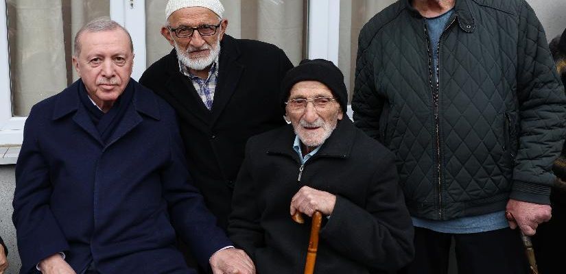 96 yaşındaki Ayşe isimli komşusunun yanına oturan Cumhurbaşkanı Erdoğan, bir süre sohbet etti.