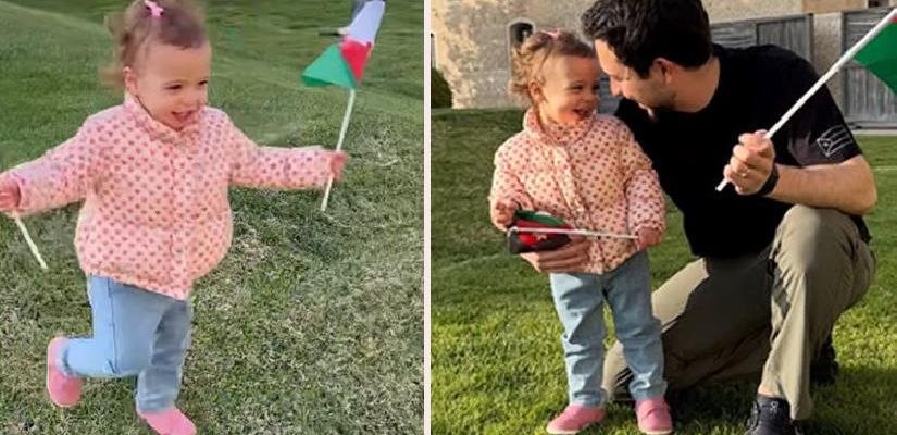 Ellerinde ülkelerinin bayraklarını tutan baba kızın birbirine bakışları da minik İman’ın babasına yanlışsız koşması da Hüseyin’in toplumsal medya takipçilerinden beğeni aldı.