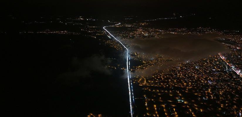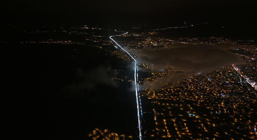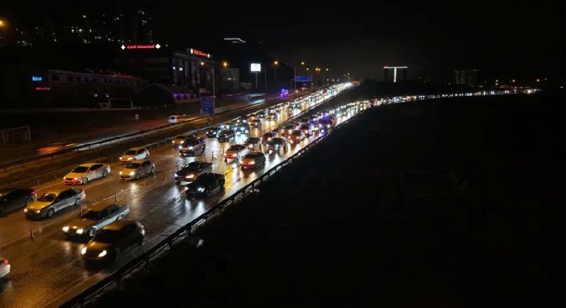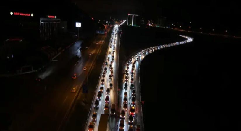 Araçların tampon tampona ilerlediği güzergahlarda uzun kuyruklar oluşurken, yoğunluk havadan da görüntülendi.