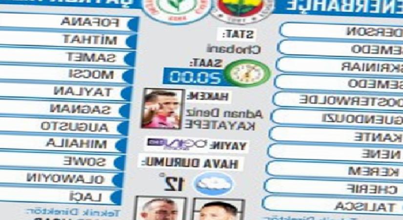 Konuk ekipte, Gaziantep FK maçında sarı kart cezalısı olduğu için takımda bulunmayan Hojer, Fenerbahçe maçı takımında yer alacak. Sakatlığı bulunan Zeqiri’nin ise takımda olmayacağı öğrenildi. İki grup ortasında dönemin birinci yarısında oynanan karşılaşmayı Fenerbahçe 5-2’lik skorla kazanmıştı.