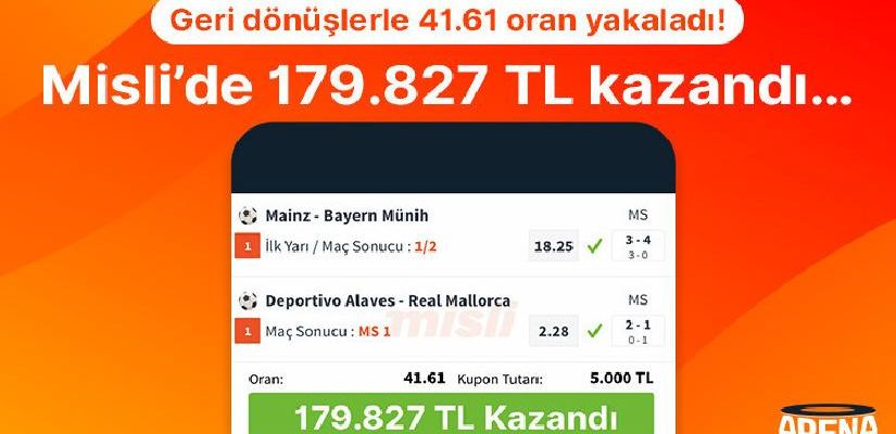 Misli üyesi, böylelikle 179.827 TL kazandı ve bu kuponuyla Misli Arena’da günün “En Âlâ 20 Kuponu” arasında yer aldı.