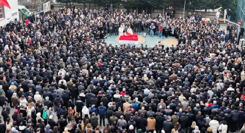 Dev Türk bayrağı asılan okulun bahçesinde yapılan törende, öğrencileri, mesai arkadaşları, meslektaşları ve eğitim sendikasının temsilcileri Çelik için dua etti.