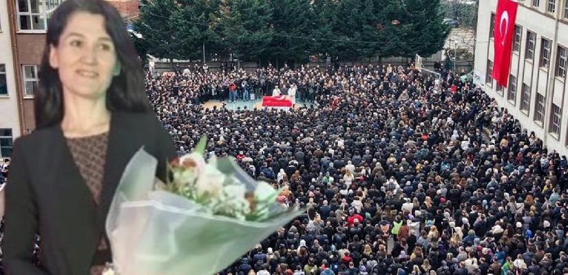 Çekmeköy’de görev yaptığı okulda bir öğrencinin bıçaklı saldırısı sonucu yaşamını yitiren biyoloji öğretmeni Fatma Nur Çelik için okulunda tören düzenlendi.