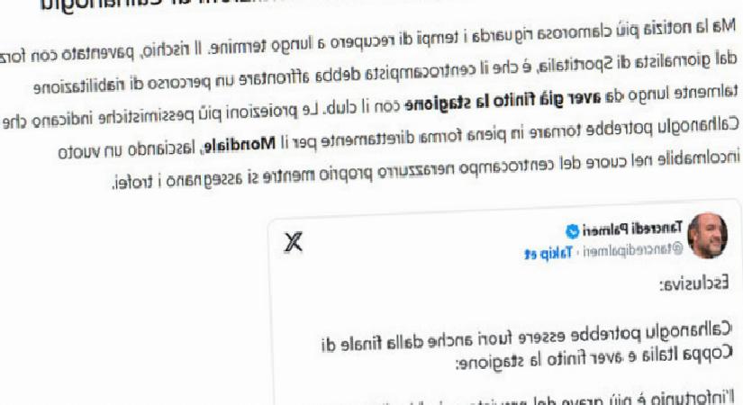 İtalyan basınında yer alan habere nazaran Hakan Çalhanoğlu sakatlığı nedeniyle dönemi kapattı.