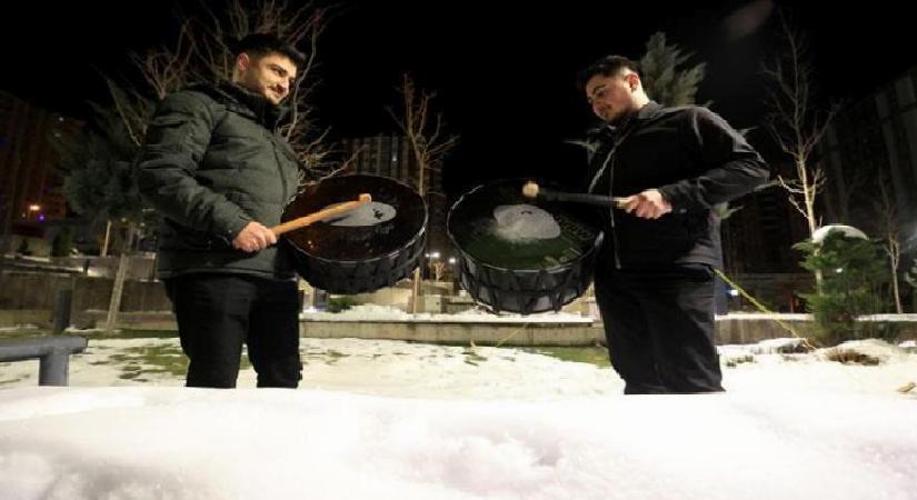Kayseri’de iki genç sahur davulunu manilerle renklendiriyor