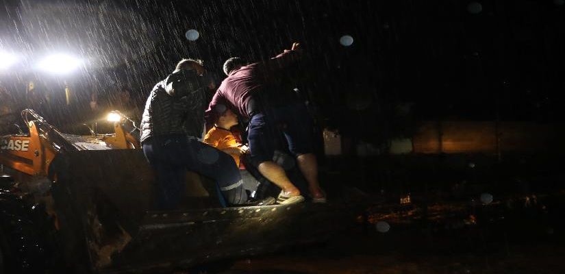 Nizip’i sel vurdu. Mahsur kalanlar iş makinesiyle kurtarıldı
