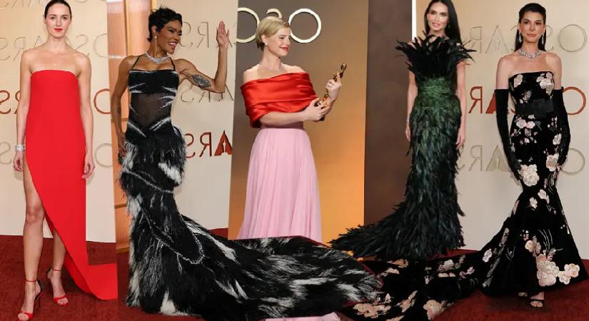 Son dönemde verdiği kilolarla gündem olan Demi Moore ise Oscar’a ödül vermek üzere katıldı. Ünlü oyuncu, tüylerle kaplı zümrüt yeşili ve siyah bir elbiseyle kırmızı halıya damga vurdu.