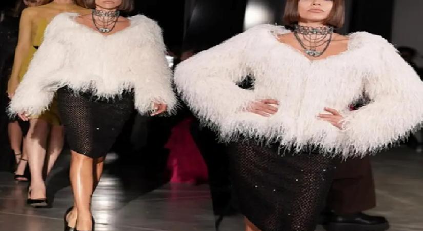 Ünlü isim, kombinini siyah yüksek topuklu ayakkabılar ve inci detaylı büyük altın rengi küpeler ve siyah gözlükle tamamladı. Ancak defileye konuk olan birçok ünlü isim, benzer bir kombin tercih etti. Sarıkaya, Anna Dello Russo, “Emily in Paris” dizisinin yıldızı Philippine Leroy Beaulieu ve dünyaca ünlü model Rosie Huntington-Whiteley pişti oldu.