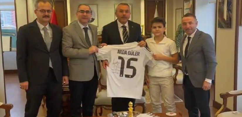 Vali Baydaş, Arda Güler’in ulusal ve manevi duruşuyla örnek olduğunu belirterek, “Biz hastaneye geldik ve dedik ki hasta ziyaret edelim. Safa dedi ki ‘Ben forma istiyorum.’ Cumhurbaşkanımız da Gençlik ve Spor Bakanımıza mevzuyu talimatlandırdı. Gençlik Spor Bakanımız da formayı imzalatarak ikram olarak gönderdi. Biz sana formayı hem Cumhurbaşkanımızın hem Gençlik ve Spor Bakanımızın hem de Arda’nın armağanı olarak veriyoruz. Olağanda imza atarken imza atıp geçerler lakin üstüne ismini yazarak imzalamış.” tabirlerini kullandı.