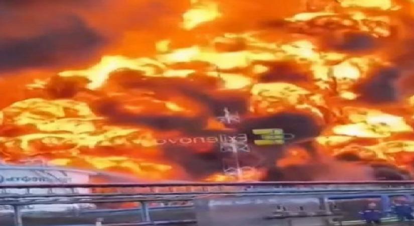 Exilenova+ tarafından paylaşılan imgede, Lukoil-Permnefteorgsintez tesisinde meydana gelen patlama ve yangın yer aldı. Paylaşımda, yangının, “Lyuty” tipi insansız hava aracı saldırısından kaynaklandığını öne sürdü.