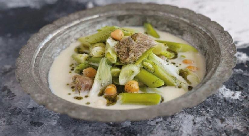 ◊ Bu sırada taze sarımsakların baş kısımlarını temizleyin, beyaza yakın kısımlarını 3-4 santim uzunluğunda doğrayıp tencereye ekleyin. Sarımsaklar yumuşayana kadar 25-30 dakika daha pişirin.