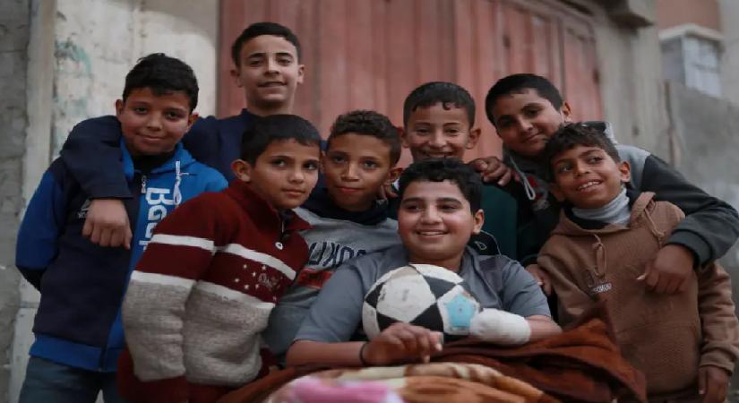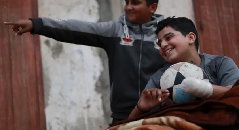 Bir mülteci kampında kalan Muhammed Atıf Ebu Mualla, arkadaşlarıyla top oynarken şüpheli bir cismin patmasıyla beraber elini ve diz kapağını kaybetti.