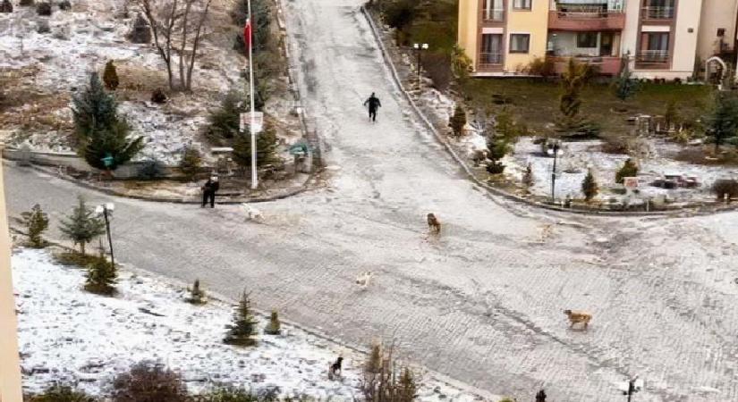 Bir süre sonra tekrar site içerisine gelen sokak köpekleri, yol kenarında bekleyen kadına saldırmaya çalıştı. Çantasını sallayarak köpeklerden korunmaya çalışan kadın, çevredeki vatandaşların yardımıyla yara almadan kurtuldu.