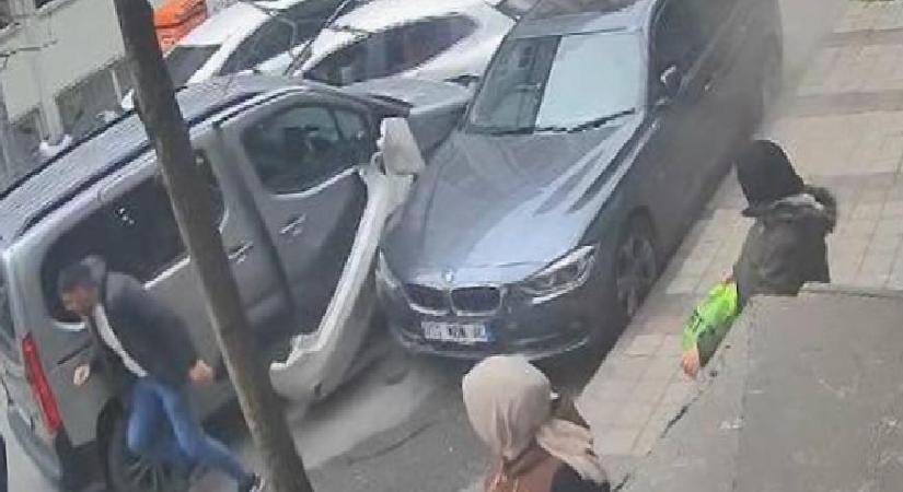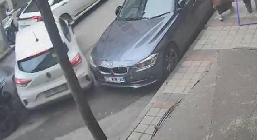 Kazada park halindeki diğer araçlar da hasar gördü. Kaza sonrasında 34 KBB 147 plakalı kiralık araçtaki 5 kişi olay yerinden kaçarken, kaza anı güvenlik kamerasına yansıdı.
