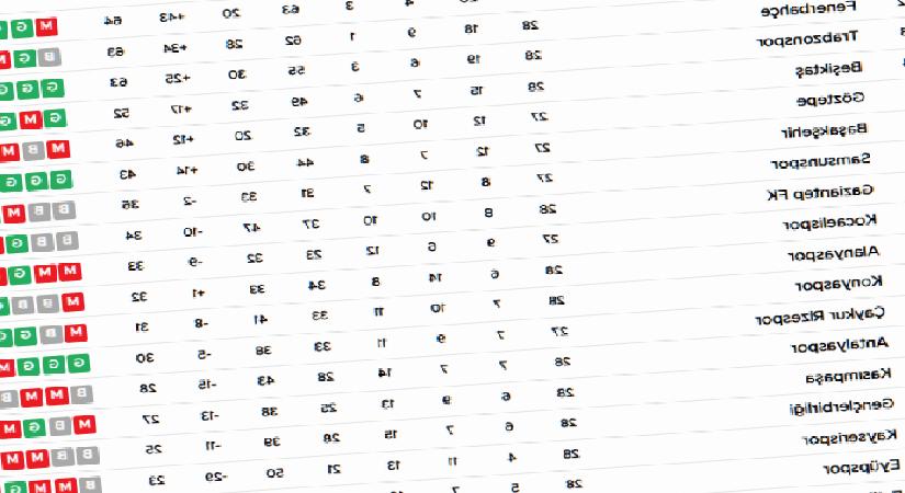 | 18 | Fatih Karagümrük | 28 | 5 | 5 | 18 | 26 | 48 | -22 | 20 |