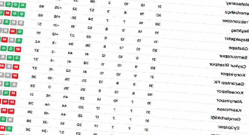 | 8 | Rizespor | 31 | 9 | 10 | 12 | -3 | 37 |