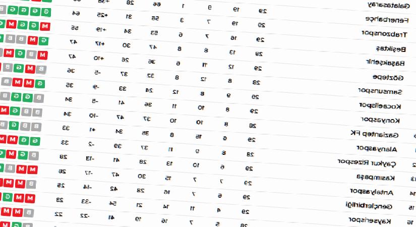 | 5 | Başakşehir | 29 | 13 | 8 | 8 | 47 | 30 | +17 | 47 |