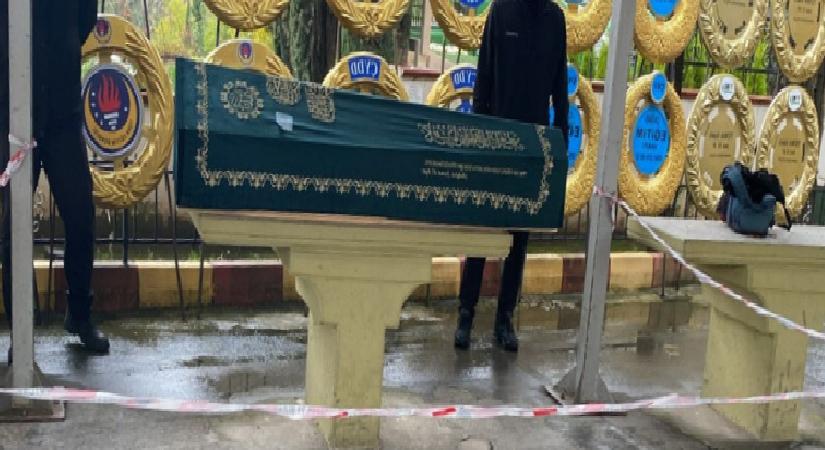 Erol Köse’nin cenaze namazından saatler evvel cami avlusuna getirilen tabutu, ailesinin isteği üzerine şeritlerle çevrildi.