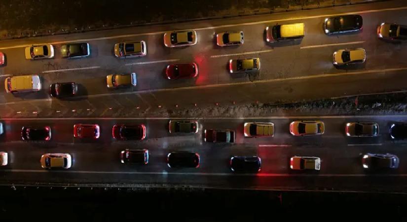 Araçların tampon tampona ilerlediği güzergahlarda uzun kuyruklar oluşurken, yoğunluk havadan da görüntülendi.